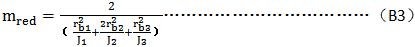 此時 ,假定内齒圈的質量爲無窮大,因此,誘導質量等於行星齒傳輸線的當量質量,mred由式(B2)確定: