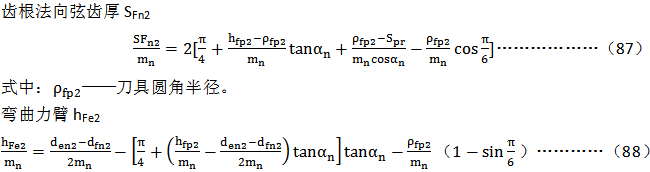 hFe——對外齒輪用式(86),對内齒輪用式(88)。