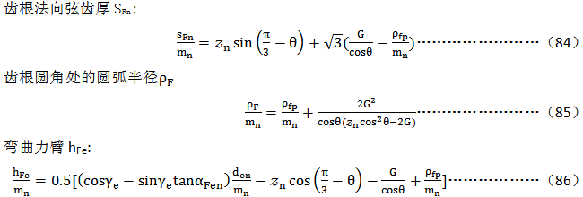 齒形系數YF由齒根危險截面的法向弦齒厚SFn與載荷作用在外齒輪齒頂的彎曲力臂hFe確定 。