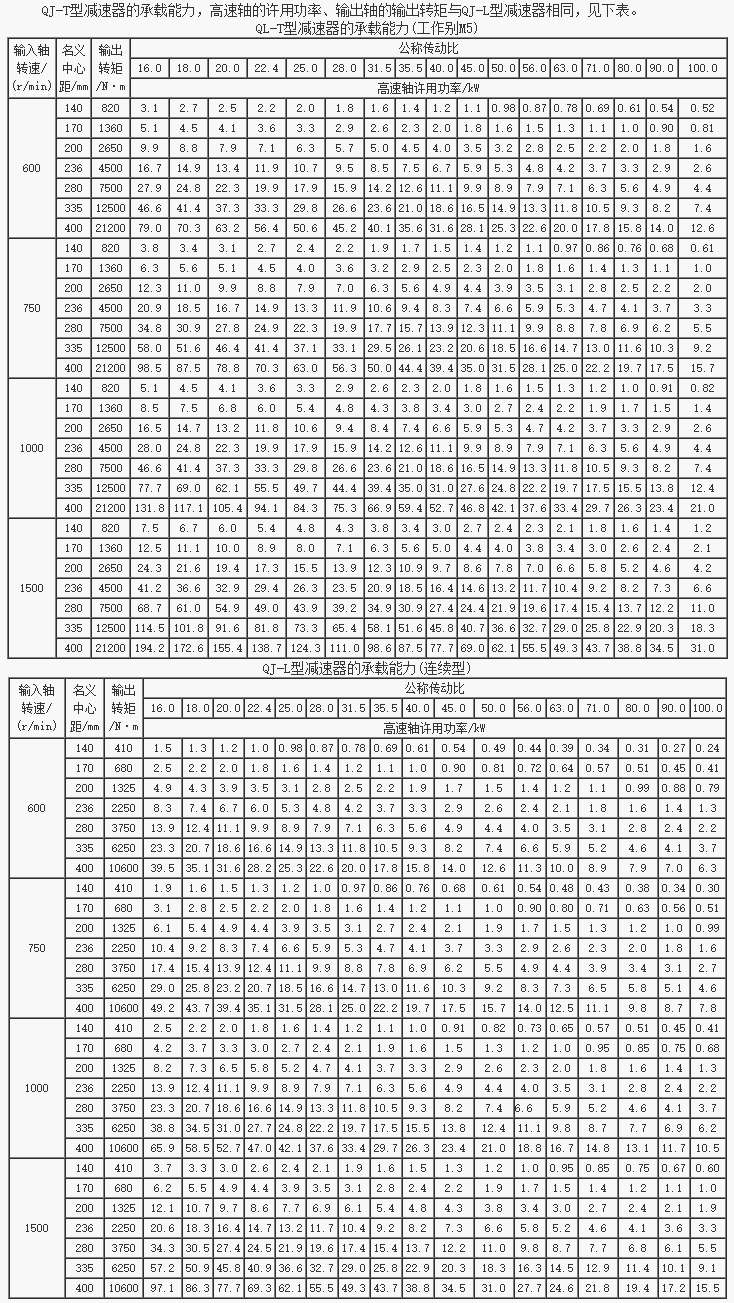 QJ-T型起重機套裝式減速器承載能力(JB/T8905.4-1999)