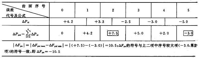 當加測跨齒距最大的軸向齒距偏差ΔPx(0-5)時,可用測得的ΔPx(0-5)對表13列誤差值進行修正,按表14的計算順序算出較精確的ΔFPX