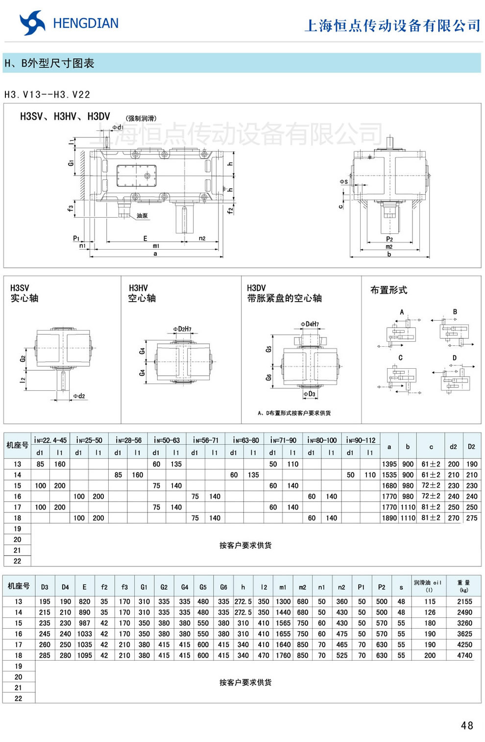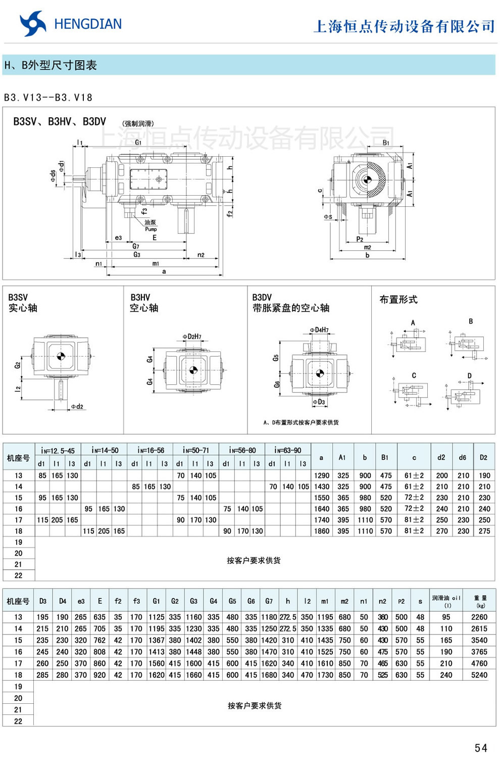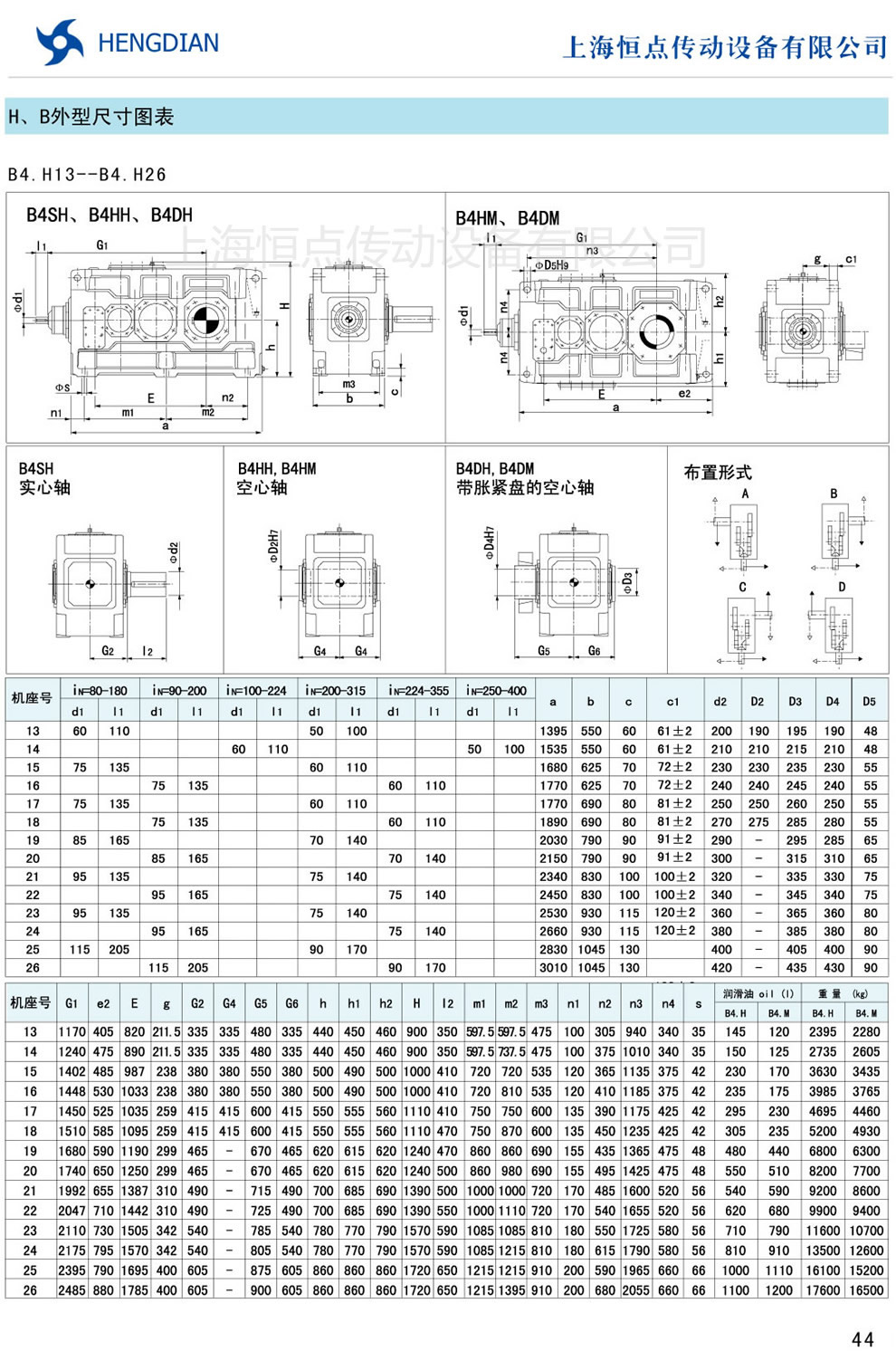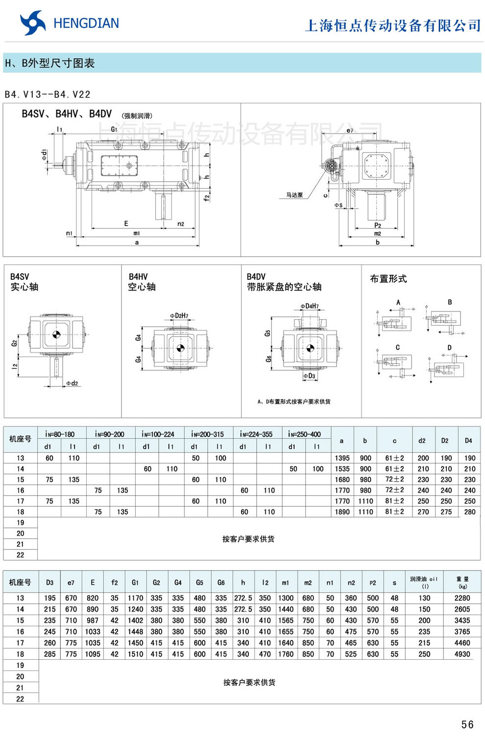 13 - HB系列外形尺寸(2) 14 - HB系列軸布置形式
