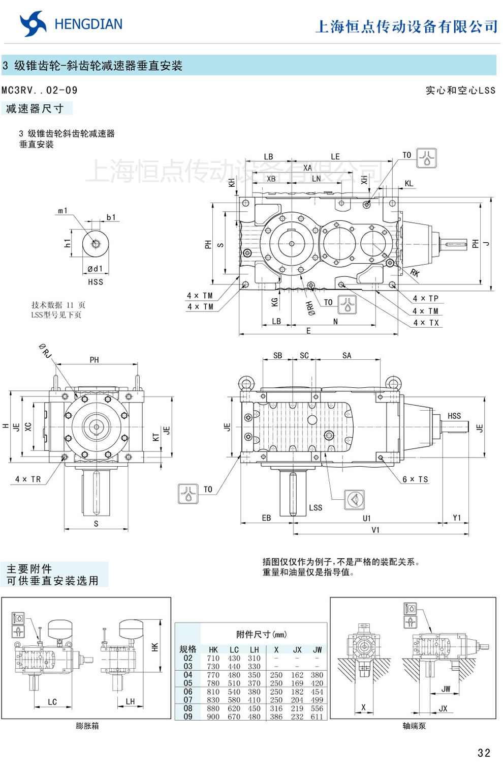 傳動能力和外型安裝尺寸/錐齒-斜齒垂直安裝 - MC硬齒面減速器