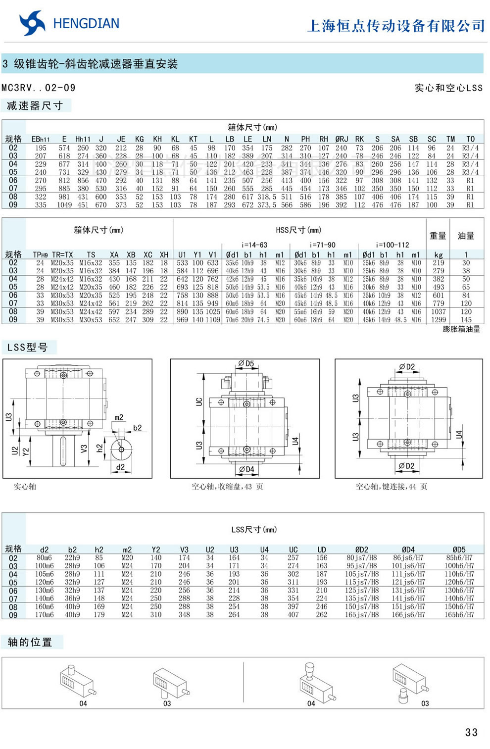 9 - 傳動能力和外型安裝尺寸/斜齒豎立安裝 10 - 傳動能力和外型安裝尺寸/錐齒-斜齒水平安裝