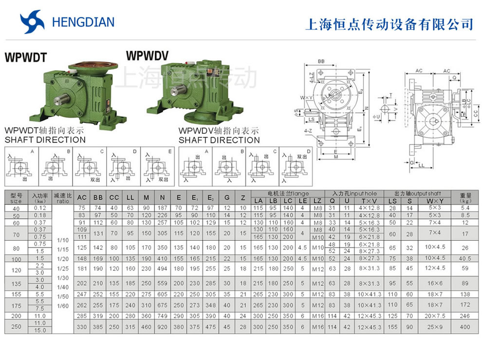 WPWDT與WPWDV萬能型蝸輪蝸杆減速機選型指南,WPWDT與WPWDV萬能型減速機軸輸入,軸輸出.WPWDT與WPWDV萬能型減速機軸指向表示方法.WPWDT與WPWDV減速機的外形安裝尺寸